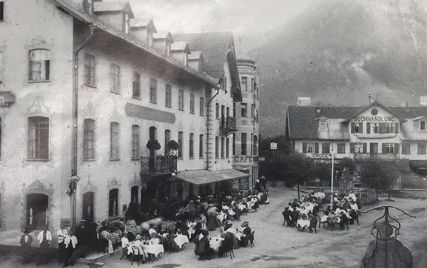 The first real estate agent in our family was Andreas Steiner (photo: right), who as early as 1884 bought hotels and inns in the Bavarian, Franconian and Swiss regions around Lake Constance at auctions and re-sold them. These included, for example, the Hotel Mohren am Mohrenplatz in Oberstdorf (below left; photo taken 1909) and the Posthotel in Partenkirchen (below right; photo taken 1910).